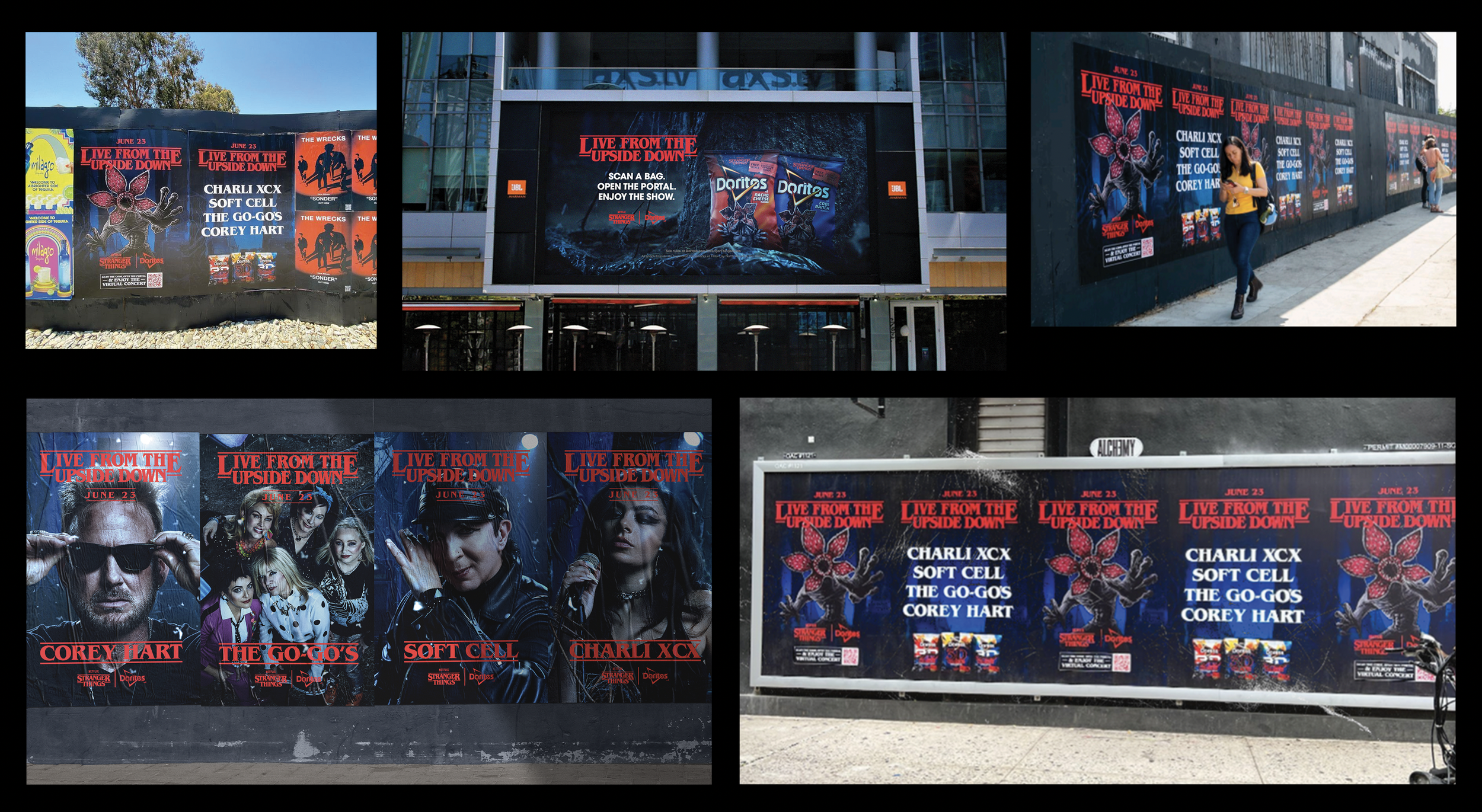 Doritos let fans access the greatest concert that never was, featuring iconic '80s artists performing live from the Upside Down. Designed to transport the audience into Stranger Things through a unique and authentic Upside Down environment, we created a set and filmed the artists, then applied the Stranger Things special effects so that it appeared as if the bands were playing LIVE from the Upside Down.
